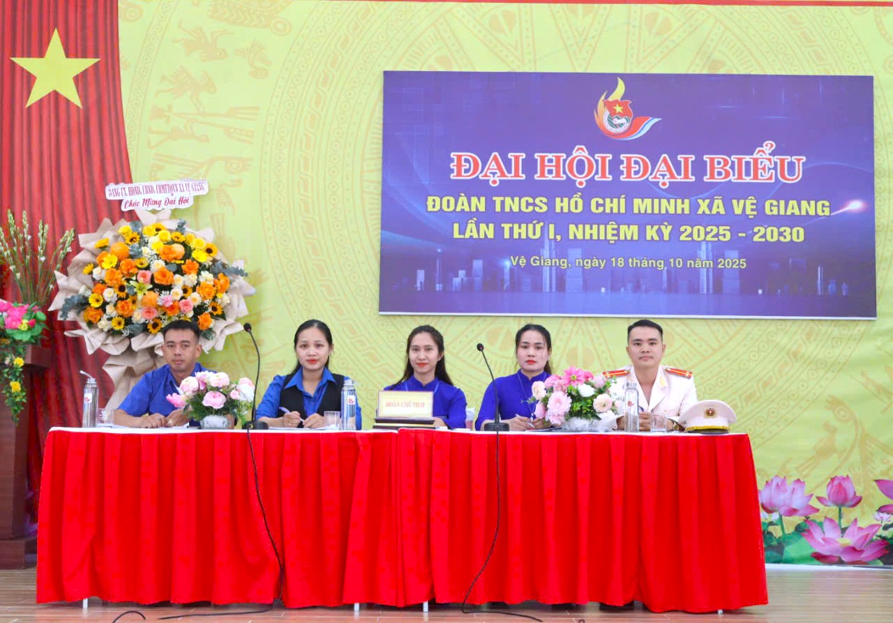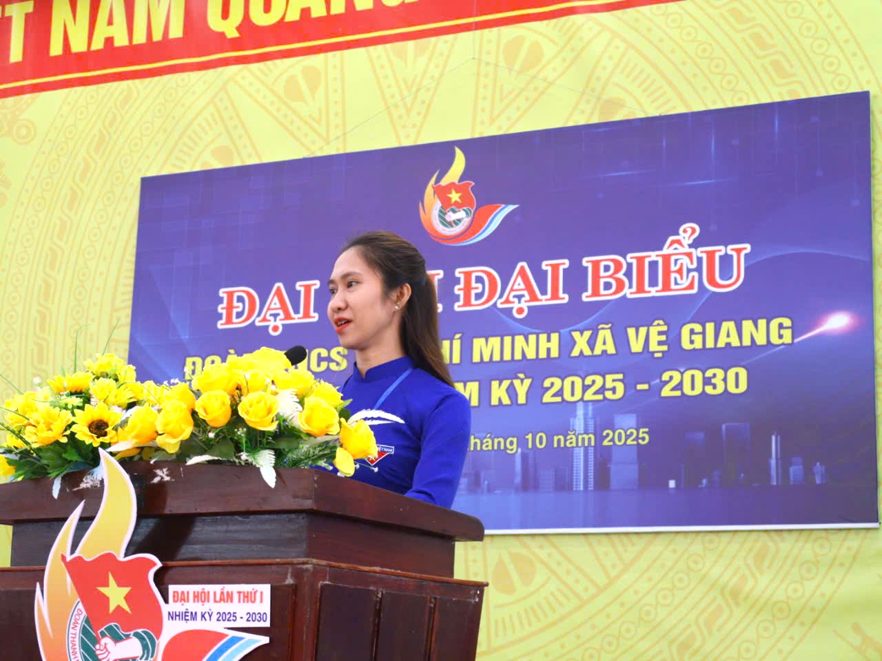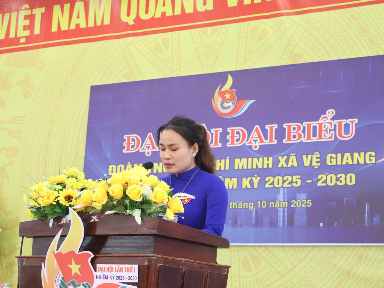 Đại hội đã công bố Quyết định của Ban Chấp hành Tỉnh đoàn về chỉ định Ban Chấp hành Đoàn TNCS Hồ Chí Minh xã Vệ Giang khóa I, nhiệm kỳ 2025 - 2030 gồm 21 đồng chí; Ban Thường vụ gồm 07 đồng chí; Ủy ban Kiểm tra gồm 05 đồng chí; đồng thời, chỉ định 01 Bí thư, 02 Phó Bí thư Đoàn xã, nhiệm kỳ 2025 - 2030.