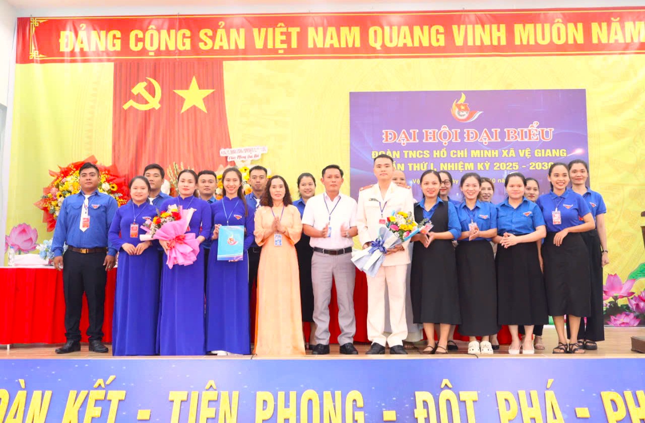 Lãnh đạo địa phương tặng hoa chúc mừng Ban chấp hành Đoàn TNCS Hồ Chí Minh xã Vệ Giang khóa I, nhiệm kỳ 2025-2030 ra mắt tại đại hội