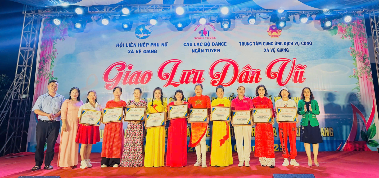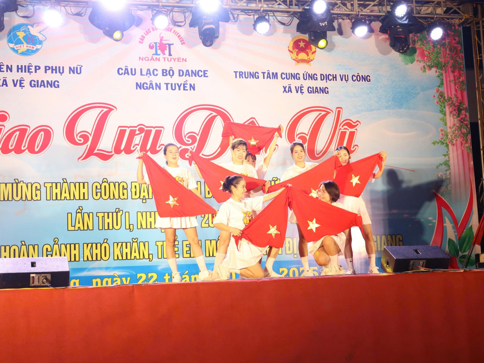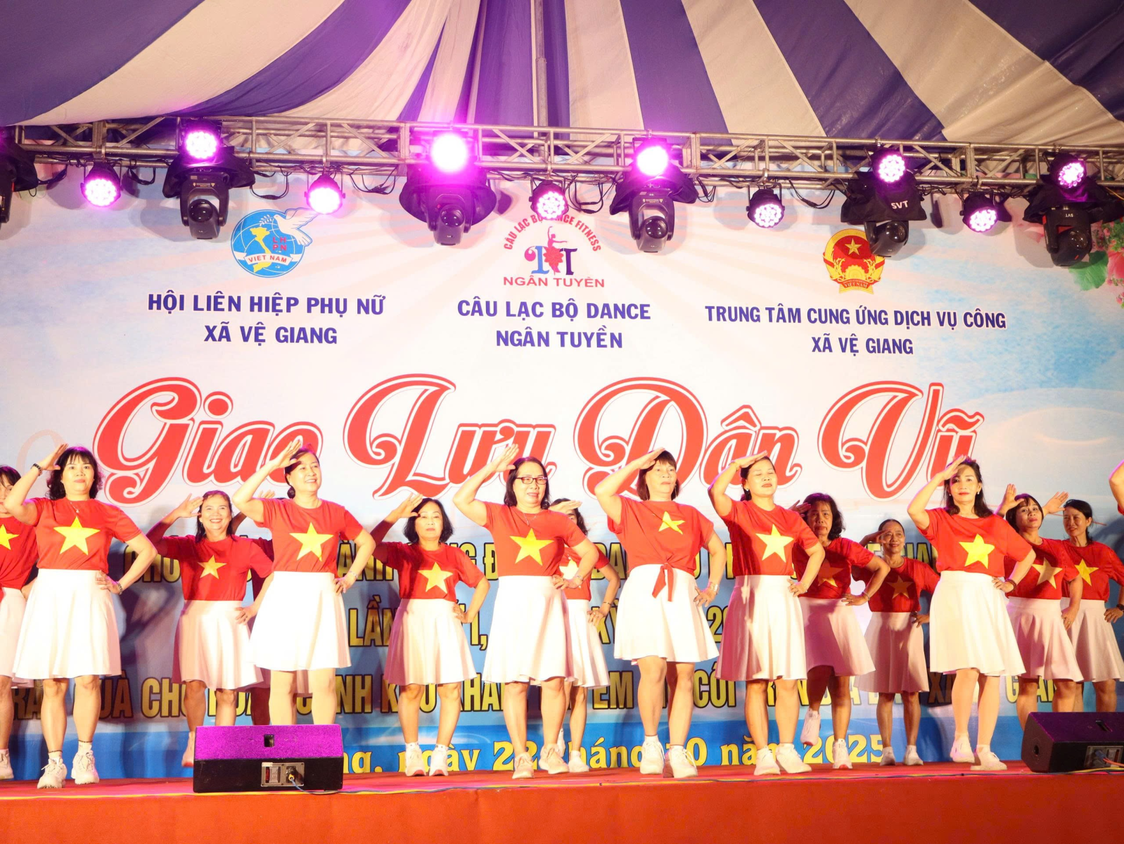 Tối ngày 21/10/2025, tại Trung tâm Văn hóa - Thể thao xã Vệ Giang, Ban Chấp hành Hội Liên hiệp Phụ nữ xã Vệ Giang đã phối hợp với Trung tâm Cung cứng dịch vụ công và Câu lạc bộ Dance Ngân Tuyền tổ chức chương trình giao lưu thể thao “Nhịp điệu yêu thương” chào mừng thành công Đại hội đại biểu Phụ nữ xã lần thứ I, nhiệm kỳ 2025-2030.