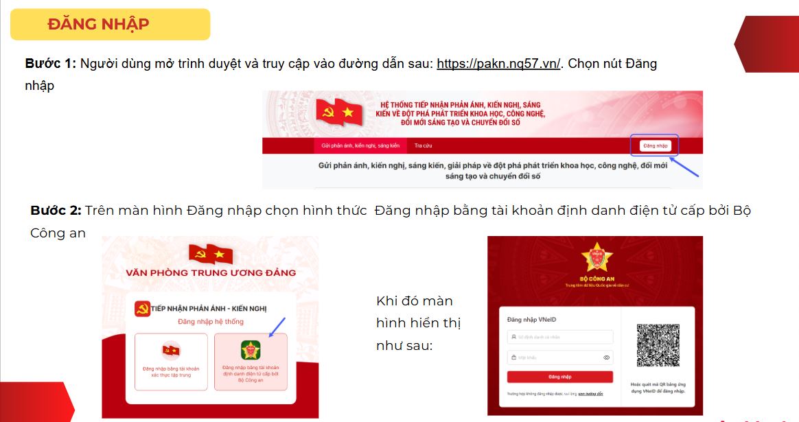 Giao diện đăng nhập Hệ thống thông tin tiếp nhận, xử lý phản ánh kiến nghị, giải pháp sáng kiến.
