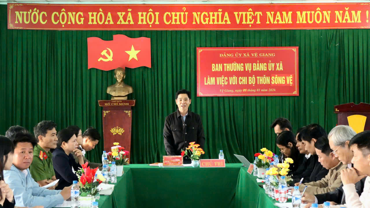 Sáng ngày 09/01/2026, Ban Thường vụ Đảng ủy xã Vệ Giang đã có buổi làm việc với Chi bộ thôn Sông Vệ nhằm nắm tình hình thực hiện nhiệm vụ năm 2025 và định hướng nhiệm vụ thời gian tới.