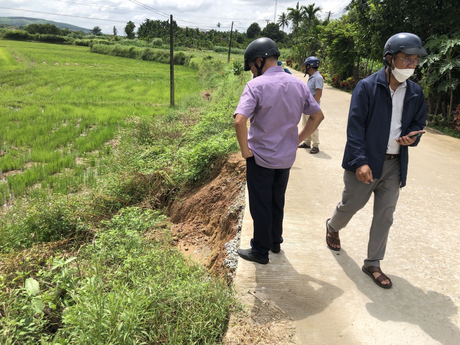 Ngay sau buổi làm việc, Ban Chỉ đạo phòng chống thiên tai và tìm kiếm cứu nạn xã đã đi kiểm tra thực tế tại khu vực sạt lở ở thôn An Đại 3.