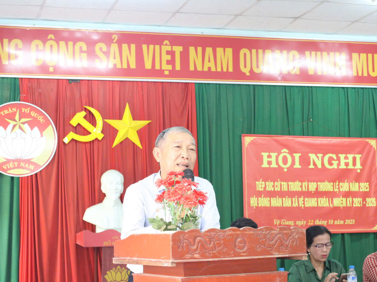 Sáng ngày 23/10/2025, tại Nhà văn hóa thôn An Đại 1, Tổ đại biểu HĐND xã Vệ Giang tại thôn An Đại 1 và thôn An Đại 2 đã có buổi tiếp xúc với cử tri trước kỳ họp thường lệ cuối năm 2025 của HĐND xã khóa I, nhiệm kỳ 2021-2026. Đây là buổi tiếp xúc cuối cùng trong đợt tiếp xúc cử tri của đại biểu HĐND xã.