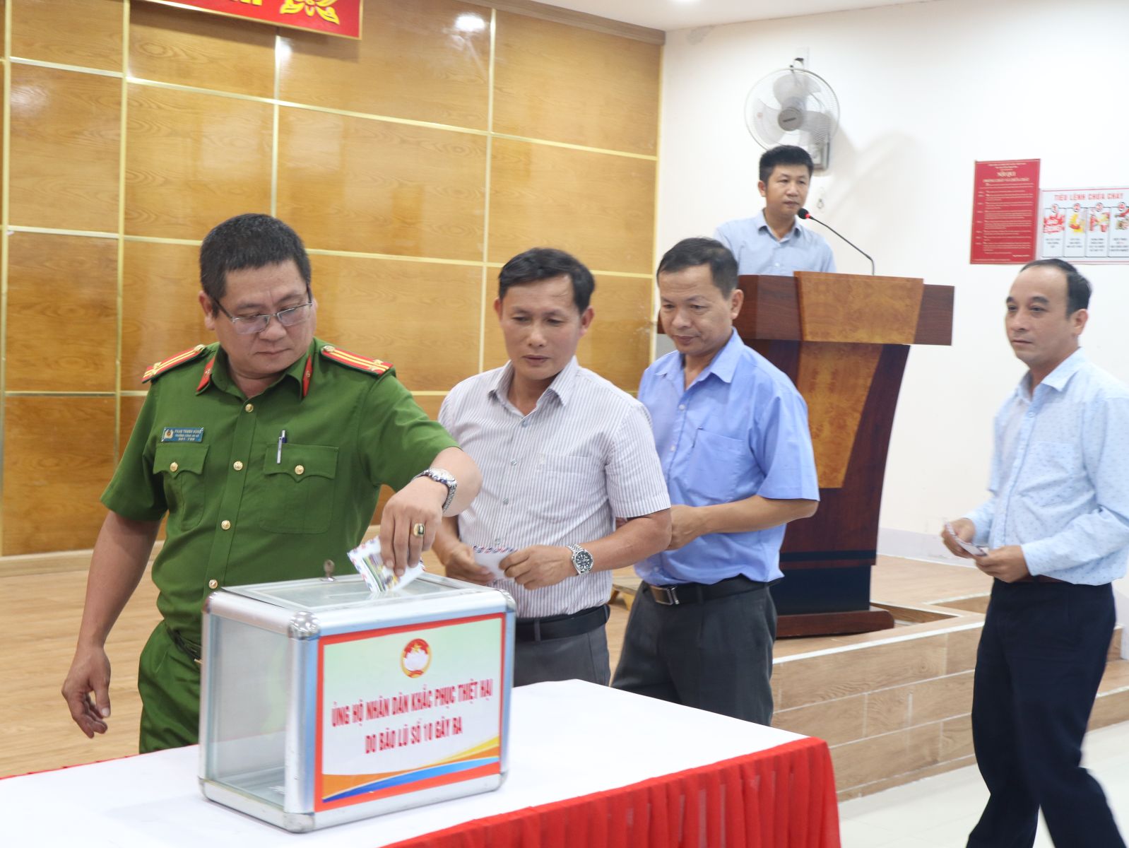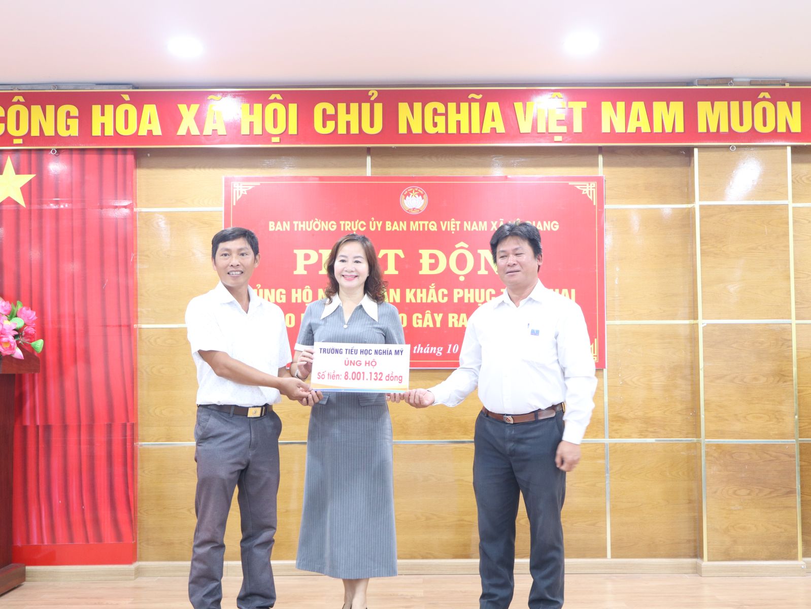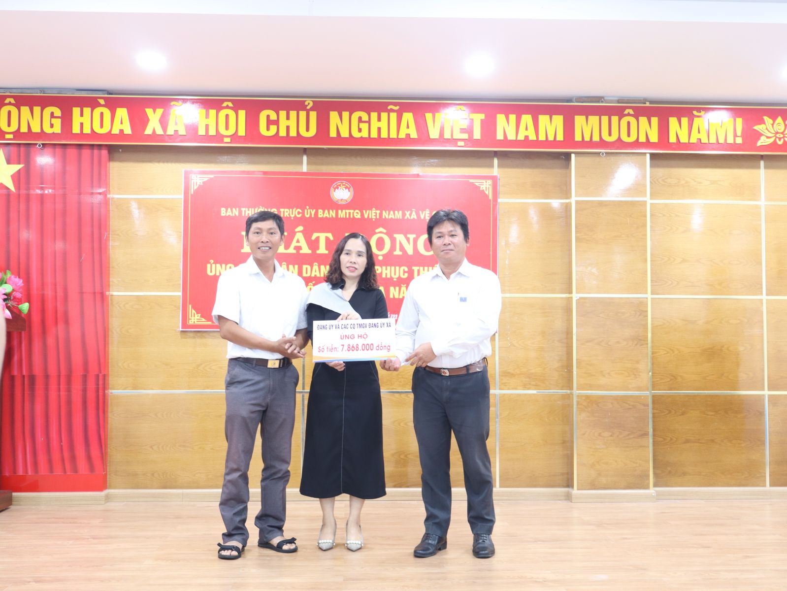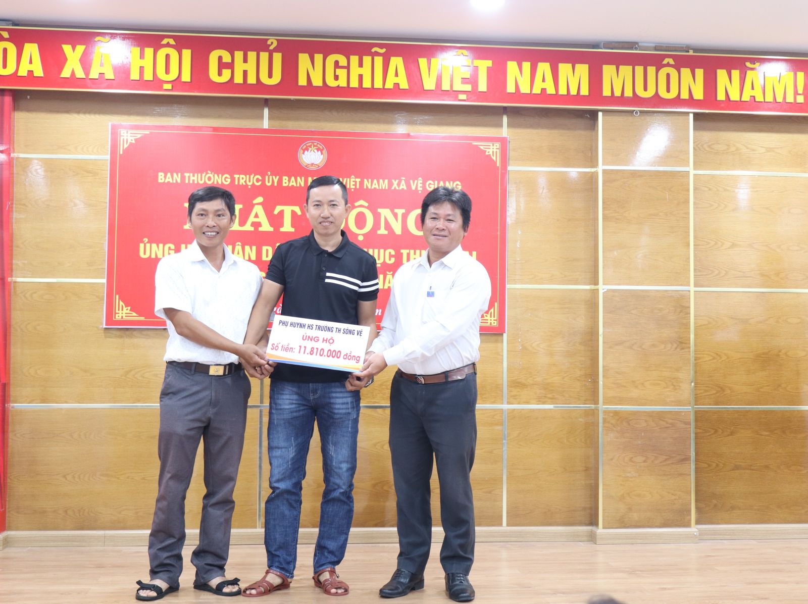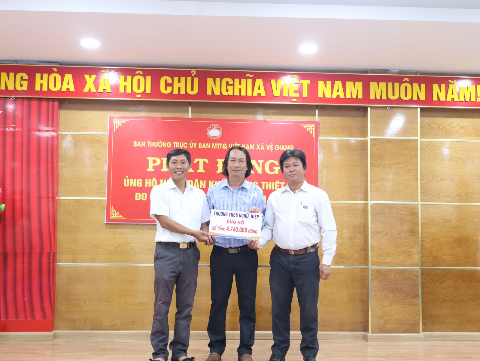 Tại buổi lễ, đại diện các cơ quan, đơn vị, đoàn thể và cá nhân đã quyên góp, ủng hộ bằng tiền mặt nhằm kịp thời chia sẻ khó khăn, giúp đồng bào vùng bị bão sớm ổn định cuộc sống. Số tiền ủng hộ sẽ được Ban Vận động cứu trợ xã Vệ Giang – Ủy ban MTTQVN xã cập nhật tổng hợp công khai và chuyển đến Ủy ban Mặt trận Tổ quốc Việt Nam tỉnh Quảng Ngãi để kịp thời hỗ trợ đồng bào vùng bị thiệt hại.