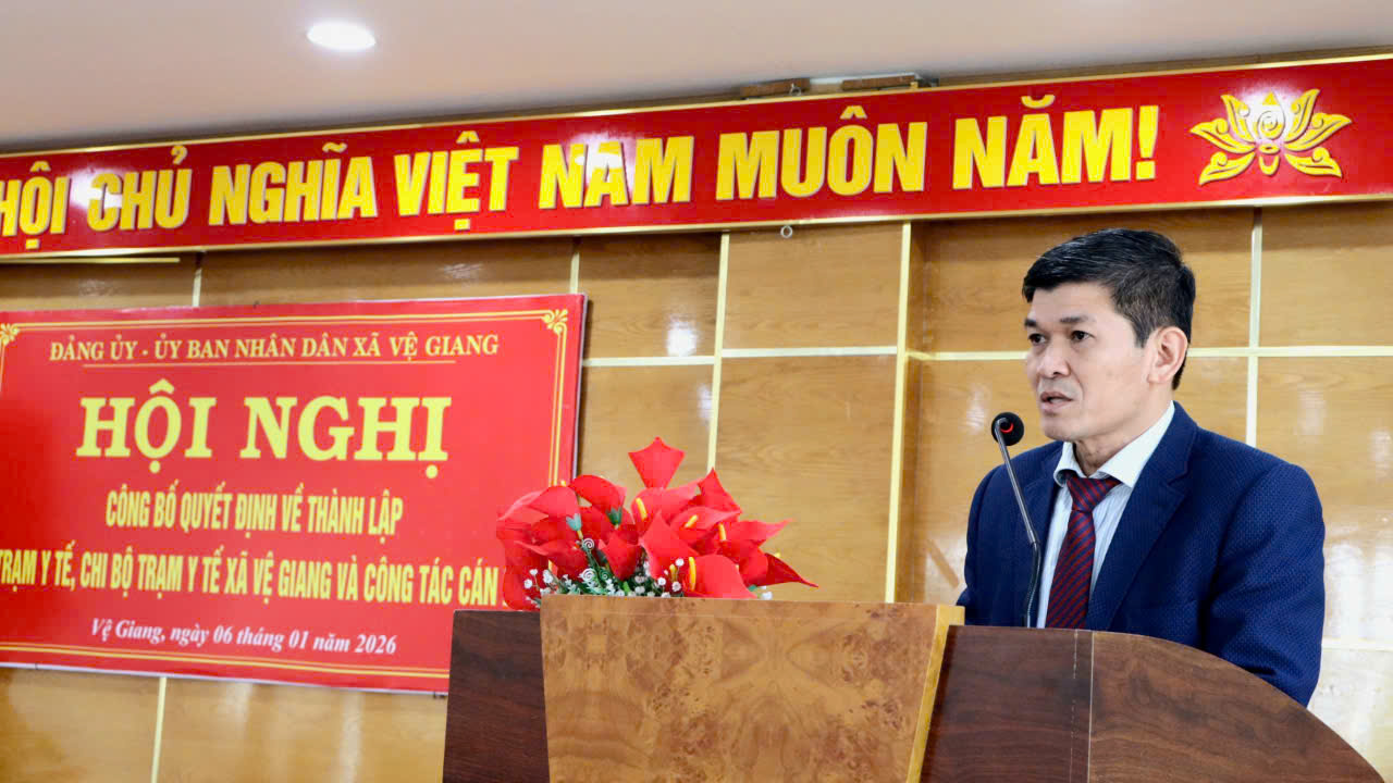 Sáng ngày 06/01/2026, Đảng ủy, UBND xã Vệ Giang tổ chức Hội nghị công bố Quyết định về việc thành lập Trạm Y tế, Chi bộ Trạm Y tế xã Vệ Giang và công tác cán bộ.